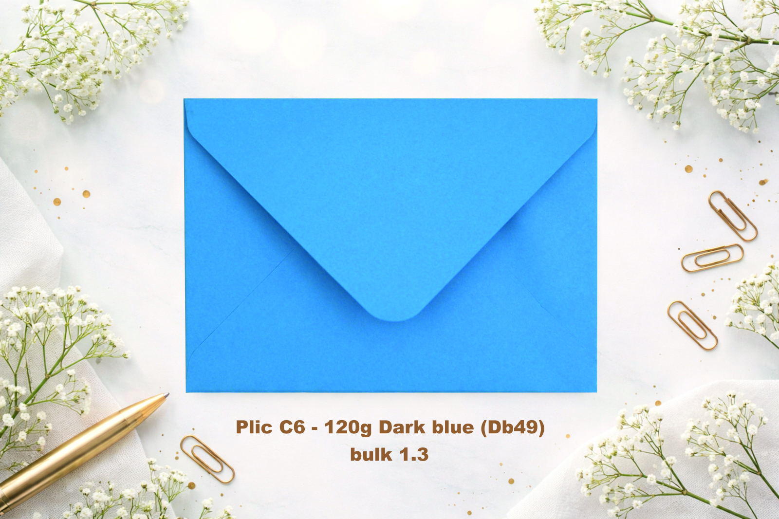 Plicurile C6 Dark Blue sunt realizate din hârtie offset colorată în masă (120 g/m²), oferind un aspect **profesional și elegant**, ideal pentru corespondență business, invitații, prezentări sau materiale promoționale cu un impact vizual puternic.